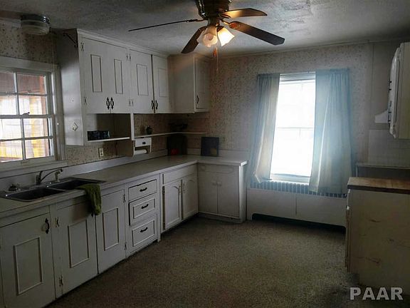 So much potential in this 4 bedroom home with hardwood floors. Large back yard. Detached garage with overhang and patio slab for outdoor enjoyment. Roof appx 2 years old. Home in estate. Sold as is.