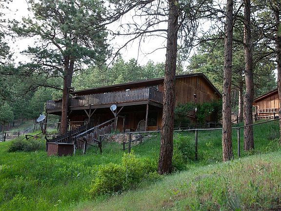Commune with nature in this roomy Sugarloaf ranch less than 15 mins. to Boulder. Located on a quiet cul de sac within walking distance of mountain trails. New carpet, paint & basement flooring: this house is ready for your own improvements and updates. Vintage kitchen and baths. Relax on the large, private deck off the kitchen surrounded by evergreens. Walkout basement, 2 Stone Fireplaces, Oversized, 3 car garage with workshop area. Cement tile roof. Plus 2 outbuildings for animals or farm equipment.