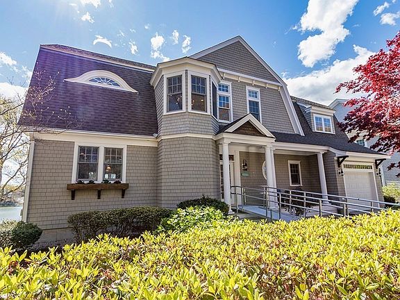 Experience summer on the water in New Seabury! Designed by Tim Luff, this waterfront shingle style home is prominently sited on Ann's Cove with a private dock. Bask in gorgeous water views and stunning sunsets from the handsome fireplaced living room with a wall of sliding doors that lead to an expansive waterside terrace. The main level features a delightful kitchen, inviting dining area, lovely sunroom, guest suite, and direct access to a one-car garage. The second level features the primary suite with luxurious bath and private deck, a second guest suite with private deck, and cheerful den. The lower level offers a game room, media room, home office, and additional flexible living space. Centrally located and convenient to all club amenities, this wonderful seaside property is perfect for boaters, kayakers, and paddle boarders.