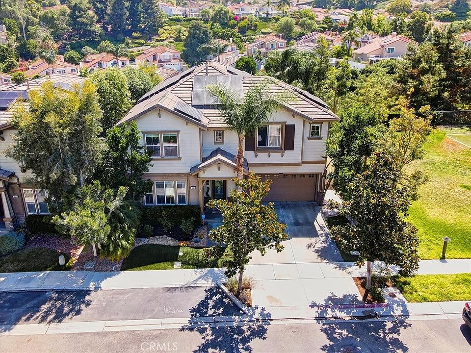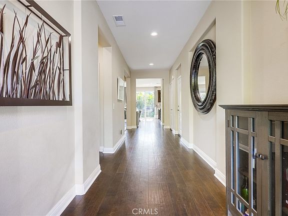Prepare to fall in love with this spacious Summit Crest home, superbly located at the end of a quiet cul-de-sac blessed with a prime elevated location affording gorgeous backyard views, and nestled up to the community park/greenspace providing additional ambience to this ideal home. The highly manicured exterior and distinctive architectural features create a welcoming first impression. Step through the elegant front door with lead glass details and soak in the light filled interior. Gorgeous flooring, recessed LED lighting, and a neutral palette throughout set the stage for the perfect living space. This well-designed floor plan includes a prized main level bedroom and full bath, perfect for an In-Law Suite or an Executive Home Office. The spacious formal dining room boasts gorgeous tile floors, custom lighting, and is open to the main living area creating a wonderful space for relaxing and entertaining with loved ones. The large living room is filled with natural light and includes a cozy fireplace and direct access to the backyard patio providing a fabulous indoor-outdoor living space taking advantage of the gorgeous views. The generous kitchen is a dream for any home chef with glorious waterfall granite countertops, rich cabinetry, custom tiled backsplash, upgraded Bosch 5 burner gas stovetop, high-end stainless-steel appliances, sparkling tile floors, and a large center prep island with pendant lighting and a prized breakfast bar. The Master Suite is a peaceful retreat with gorgeous views and a spacious master bath with handsome cabinetry, granite topped dual vanity, decadent soaking tub, oversized step in shower with frameless glass enclosure, custom tile details, framed vanity mirrors, and a huge walk-in closet. 3 spacious guest bedrooms, 2 additional guest bathrooms, ample hallway linen cupboards, workspace nook, and a convenient bedroom level laundry room completes the upstairs living spaces. The backyard is a lush picturesque oasis with a covered patio, multiple seating areas, easy care hardscape, bubbling fountain, vibrant tropical landscaping, a built-in BBQ and bar, and serene treetop views. Fine features include tankless water heater, water filtration & reverse osmosis system, and a 5.25 kW 15 panel solar system with car charger. Within walking distance of Lake Forest Elementary and several family friendly parks, nearby hiking and biking trails, close to shopping dining and entertainment and just minutes from local beaches. No Mello Roos!