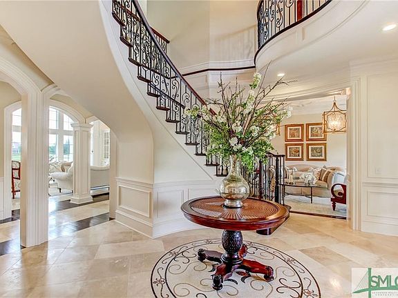 Luxury lifestyle at its very best! This exquisite custom estate is located on a beautiful lagoon in Savannah Quarters Community. The Grand Staircase and beautiful views welcome you as you enter this home. Beautifully appointed with attention to every detail. Enjoy gracious living and entertaining with a large open living area with fireplace, gourmet kitchen with breakfast area, large formal dining room, piano room and study or family room with fireplace off kitchen. The large master suite, master bath and walk-in closet are also located on the main floor with lagoon views. The main level also includes a guest room with en-suite bath, powder room, large laundry room, mud room, children's Library and children's playroom. The second floor offers three additional bedrooms with en-suite baths, a living area and a large bonus room. This home is like new and ready for the discerning buyer.