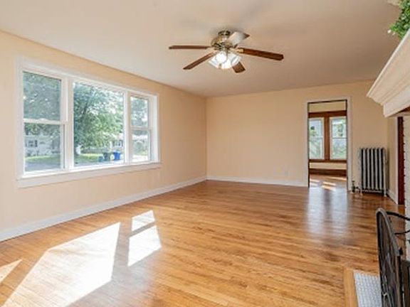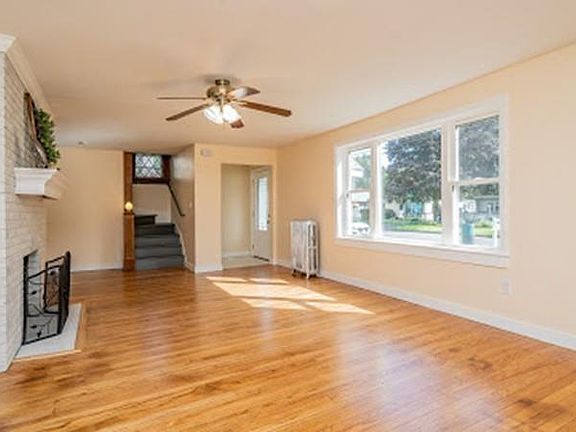 Welcome home to this immaculately renovated colonial, which boasts cheerful colors and beautiful hardwood floors throughout, along with plenty of natural light. This 1,912 sqft home features an impressive updated kitchen with a walk-in pantry, soft close cabinets, a center island that comfortably seats four people, and stainless steel appliances. The living room contains a gorgeous fireplace, perfect for cozying up in the cooler evenings. A bonus sun room can also be found, which has wall to wall windows, vaulted ceilings and skylights. Unique features include the restored original wood molding, pocket doors, and built in shelving all of which can be seen in the spacious dining room. Also noteworthy is the walk out basement and the large backyard and deck, perfect for entertaining. Additional updates include a brand new heating/hot water system with programmable thermostat, renovated bathrooms with water-saving toilets and vinyl replacement windows.