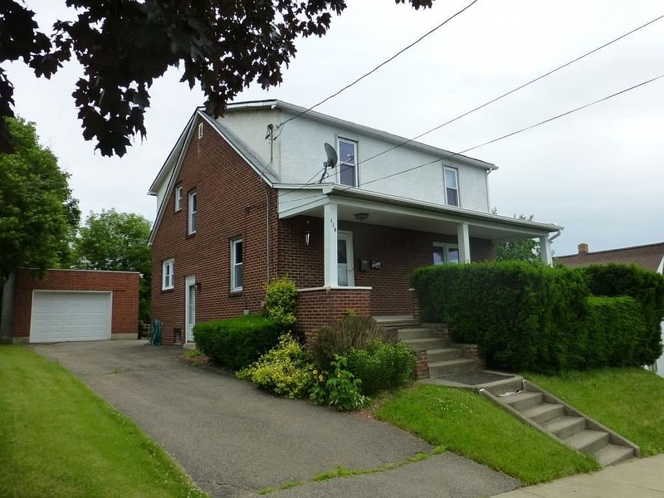 Brick Two Sty Home features lovely updated kitchen w/granite counters, maple cabinets, 3 bedroom, 1 bath, hdwd flrs, central air, insulated windows, newer hot water heater, full front porch, 1 car detached garage.