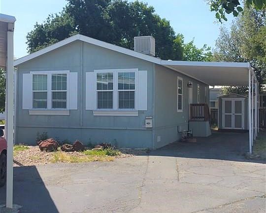 Nestled in the quaint family oriented mobile home park - "The Trees", this cute double wide home is ready for moving in. There is no age restriction here. You do not have to be a "Senior" to live in this park. It has 2 spacious bedrooms and 2 baths. The Master bedroom has an on-suite bath. This unit is set back from the quiet street for extra privacy. Friendly park has pool and amenities. The Park wants to interview and must approve the Buyers and their pets. The total Buyer(s) income must be 3.5 x the rental rate for the space rental. The rental rate is approx. $709 per month. It is a spacious open floor plan which includes living room and attached dining room. The kitchen has chocolate colored cabinets and granite look counter tops All appliances stay including the refrigerator, washer and dryer!!! New fresh paint. The streets all lead to excellent access to shopping, restaurants and freeways. This will not last!