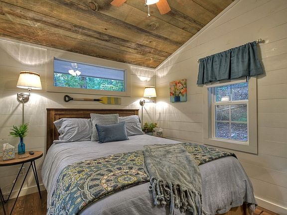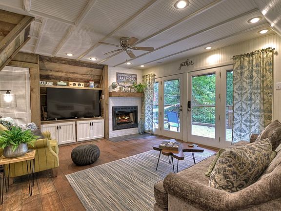 Adorable A-Frame turned Cozy Lakeside Cottage with deeded lake access and shared dock on Lake Blue Ridge...this 2 bedroom/1bath charmer is newly remodeled with light & bright interior featuring warm pine floors, plentiful windows, bunk loft + bonus room, sprawling deck overlooking quiet are of the lake leads to hot tub & fire pit areas, lower level rec room, laundry & storage with concrete patio, wooded lot with concrete parking area in Aska Adventure Area across historic Shallowford Bridge...great getaway or vacation rental, tastefully furnished and turn key...a rare find indeed in quaint lakeside community!