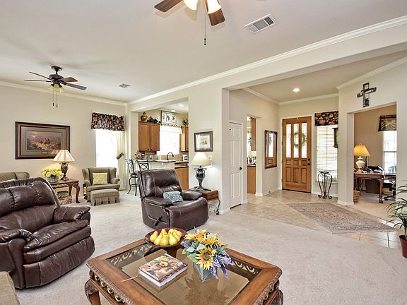 Tremendous street appeal w/ large oaks shading the front yard, beautiful landscaping. Interior&exterior paint, carpet, granite counters, water softener, A/C & a multitude of other updates were done in 2012. Enjoy high ceilings, crown molding & 8ft French doors to patio. Views of the wooded preserve & Texas wildlife for outdoor lovers delight, can be seen from the flagstone patio & screened porch.This same view is available from Master suite, which has 10 ft ceilings & lots of natural light.Trinity plan.