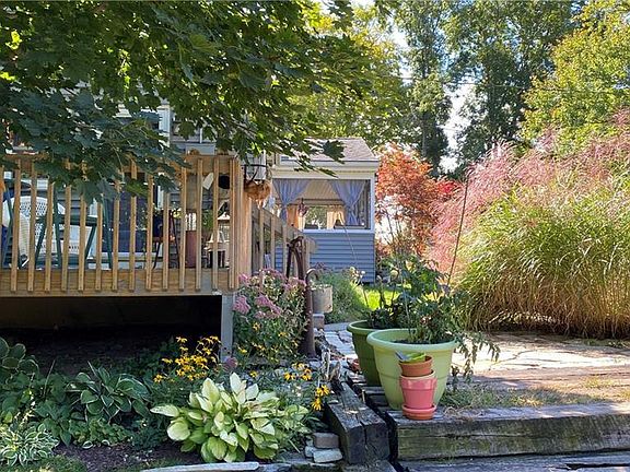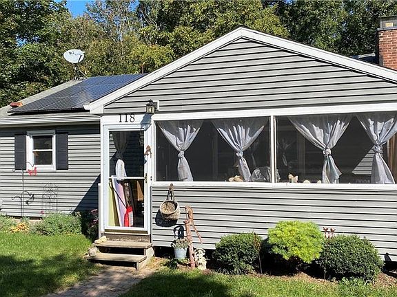 This beautiful ranch awaits! Curb appeal of landscaping shows years of care that has been put into the exterior alone; stone waterfall fishpond, walkways, stone patio, custom gardens, hedges,shrubs,perennials, & more. Lovingly cared for home has had many updates since ownership. Fully screened 3-season porch introduces you to the entry way of the heart of the home; kitchen displays surplus of oak cabinets, polished Quartz/Silestone countertops, movable custom made island for eat-in style dining, updated appliances, Bruce oak hardwood and shown warm oak throughout. Family room w/new stone and tiled gas fireplace for those cozy winter days coming upon us. First floor full bath, down the hall to 3 bedrooms each with newly painted walls and ample closet storage. First room is currently used for formal dining and has a custom closet with washer/dryer hookup, or in basement if preferred. Exit to the back with new French doors to the open wrap around deck for those warm summer months or winter season views. Downstairs to walkout basement you will find an office/craft studio with custom built in shelved storage, freshly painted and new flooring. Around the corner is additional unfinished workspace with sink. The Pellet Stove vents to upstairs family room for additional heating. Buyer to assume Solar panels '17. Agent related. Great location, close to Coventry lake for Summer fun, convenience to shopping, restaurants, universities, and more! Schedule your private showing today!