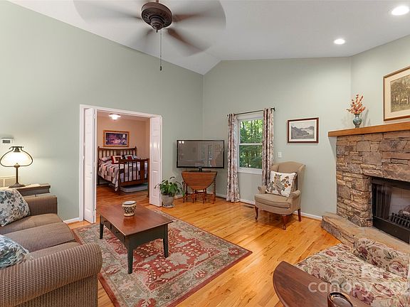 Nestled in the mountain paradise of Connestee Falls, 118 Usgewi Ct is a stunning single-level home featuring 3 bedrooms and 2 baths. This property sits on a large, private, flat double lot, offering ample outdoor space. Inside, you'll find beautiful hardwood floors and vaulted ceilings, creating an open and inviting atmosphere. A 2018 roof ensures worry-free living. The home boasts a screened porch and an open grilling deck, perfect for enjoying the private wooded backyard. The spacious garage provides plenty of room for vehicles and storage. Additionally, a large basement workshop or storage area adds to the home's versatility. As an owner in Connestee Falls you have access to over 20 miles of pristine hiking trails, 6 water-falls, 4 lakes totaling over 230 acres of lake frontage, an 18-hole designer golf course, pickle ball, tennis, pool facilities, and multiple top-notch food and beverage options.