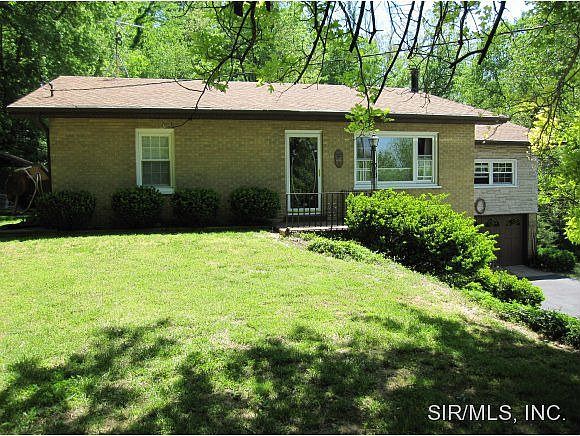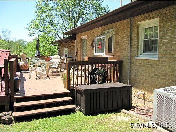 Nestled away w/ approx. 1.5 acres, this home has a private setting, surrounded by trees, beautiful landscaping & a walking trail through the woods. Full brick, large deck in back, nice storage shed w/ electric, updated interior. Hardwood floors. New laminate flooring & bar/kitchen area in finished basement. Split bedroom floor plan. Master Bedroom features private 3/4 bath & cozy wood burning stove. Kitchen is updated w/ ceramic floors, a garden window, cabinetry w/ the distressed look & a spacious pantry. Plenty of storage throughout. Garage has built in storage too & a custom work bench. Roof 2006. Newer windows.