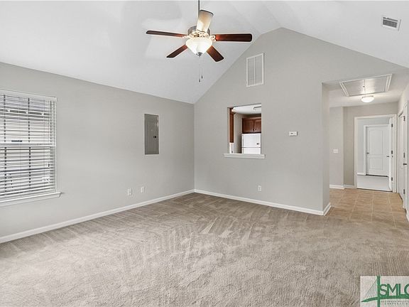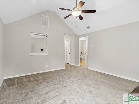 PRICE ADJUSTMENT! Great location and move-in ready! This cozy single-level 2-bedroom home features a vaulted ceiling in the living room, creating an open and inviting atmosphere. The eat-in kitchen overlooks the living room, perfect for entertaining or enjoying casual meals. Appliances include a new Samsung electric oven, refrigerator, dishwasher, three compartment sink, and hand wash/vegetable fruit sink. The owner's bedroom includes a vaulted ceiling, a walk-in closet, and an en suite bath for added comfort and privacy. The guest bedroom also boasts a vaulted ceiling with easy access to the additional full bath. Enjoy the community playground and the convenience of being close to I-95, with a short drive to historic downtown Savannah.