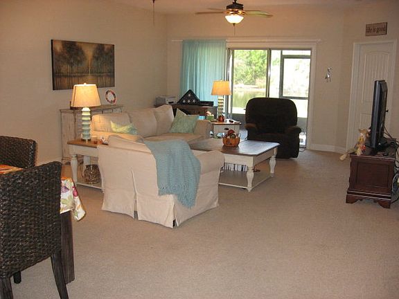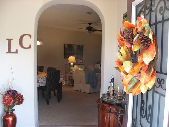 Welcome home to easy living! This spacious townhome has many thoughtful features and decorative touches. Wrought iron/glass details in front door, gorgeous wrought iron handrail leading to the upstairs bedrooms, master suite with walk-in shower and separate garden tub and comfort-height vanity area, eat-in kitchen with breakfast bar, overlooking the formal dining area and great room. Kitchen features walk in pantry, new stainless steel refrigerator, new dishwasher and nice cabinetry. There's a huge closet/man cave upstairs that provides lots of storage and several linen closets. The 2 car garage has extra room for storage as well. Screened lanai overlooking the lagoon and fountain. The gated Villas offers a community pool and clubhouse, fitness center and wonderful walking areas.