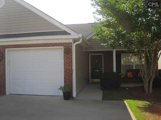Enjoy low maintenance living and the open floor plan that this charming patio home has you offer! High valuted ceiling accents the great room area carrying through the open kitchen with breakfast bar. Each bedroom has a a vaulted ceiling as well! Bedrooms are located at the front and back offering privacy for guests or providing for the perfect roommate plan! Enjoy relaxing in front of the gas log fireplace with built in entertainment center. The private master suite has large vanity and walk in closet. Back yard is fenced in with concrete patio. Additional storage & parking in garage. Convenient location - a short drive to both downtown Columbia and downtown Lexington! Recreation area just across the street with playground.