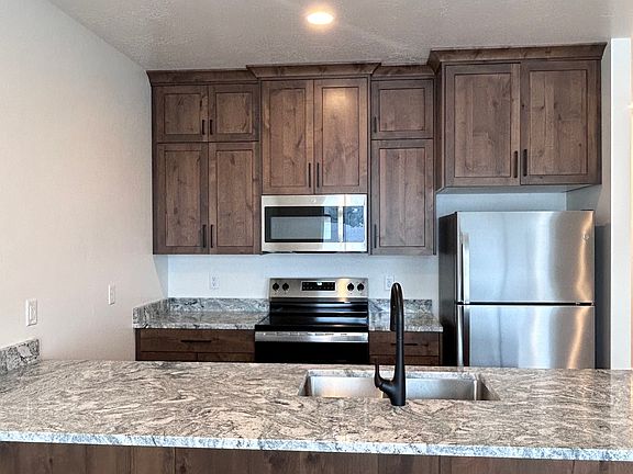 Beautiful new three bedroom and two bathroom home for rent. Includes 1 car garage and extra parking. This home has a primary suite with primary bathroom and walk in closet. All on one level with no stairs. Includes great room with fireplace and a spot for large flat screen tv. Nice kitchen has good cabinet space and the appliances include, refrigerator, stove and oven combo, microwave and dishwasher. There is a laundry room with washer and dryer with shelving for storage. The home has new high efficiency appliances and lighting. There is a private back yard with vinyl fence. There is also a small quiet city park next door with playground . It's definitely a great place to live. This home is in a great location. Close to shopping and easy to find.