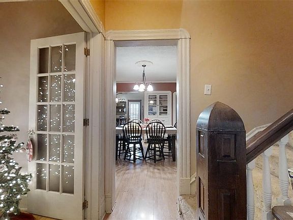 Charming character and timeless details abound in this 5 bedroom farmhouse in peaceful Rossville! The inviting front porch leads you inside where you'll discover beautiful wood details in the open staircase and French glass doors leading into the spacious formal living room. The open dining room boasts plenty of natural light, classic trim work, and great built-ins. Find ample cabinet and counter space in the kitchen including a double sided breakfast bar with seating. Through another set of French doors, you'll discover the main floor bedroom complete with private half bath. Up the winding staircase, you'll find four additional bedrooms each with great closet space and the updated full bath featuring built-in storage options and extra counter space. Need more? Check out the unfinished basement for bonus storage solutions. Outside, the large wood deck provides great space to entertain or enjoy the partially fenced yard with machine shed! Take a look at this fantastic find today!