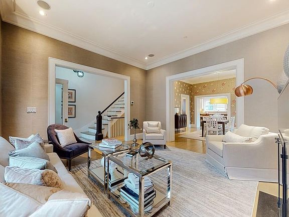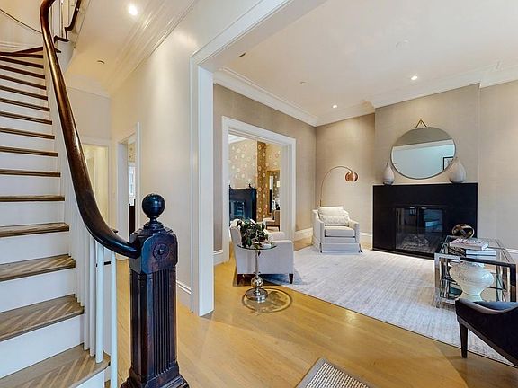 This gorgeous single family residence was renovated by Holland Construction in 2011. Located on a quiet side-street, it has a wonderful floor plan that is difficult to find in the South End. The main floor has living, dining and eat-in kitchen all on one level. The house's generous width (22') and a large extension on the rear make this unique plan possible. A deck off of the kitchen is piped for gas for outdoor grilling, and there are gas fireplaces in both the living and dining rooms. The master bedroom has vaulted ceilings, walk-in closet and a spa like bath with deep soaking tub and glass enclosed shower. There are three large bedrooms with great closets. The full-floor media room is wired for home theater, and opens out to a large and sunny terrace surrounded by trees and kitchenette makes for easy entertaining. Garden level playroom and full bath. Hardwood floors throughout, great storage, central AC, large garden, central A/V system and two full direct access parking spaces.