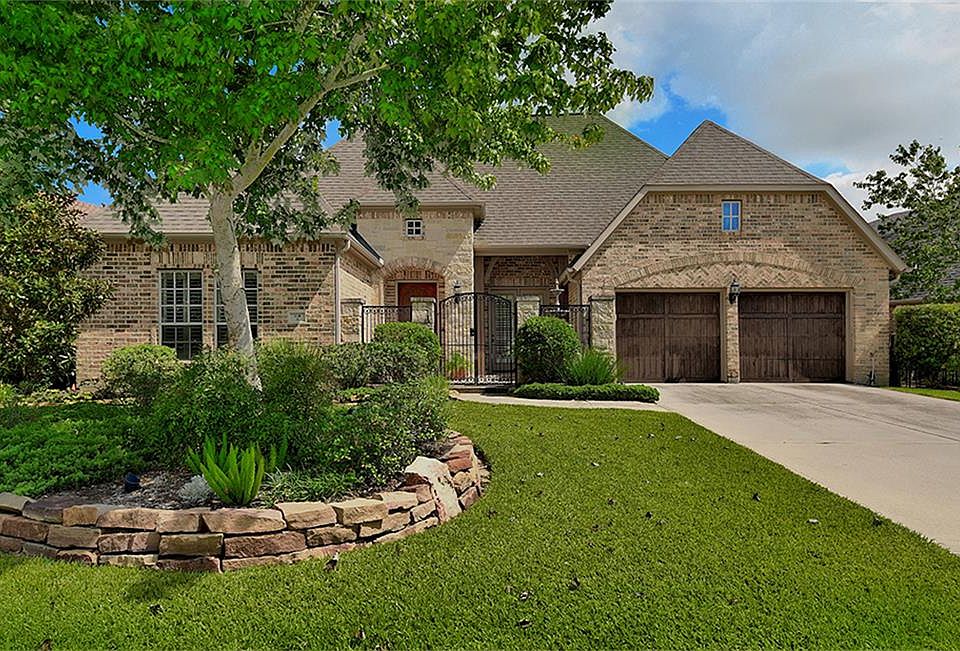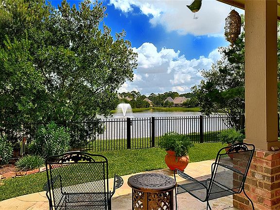 Stunning waterfront patio home on a pristinely landscaped lot in Creekside! Gorgeous wood flrs, crown moulding, Plantation shutters & serene views of the fully stocked pond thruout. Open concept island kitch w/granite counters & Thermador appls opens to bkfst rm & den w/lrg wood encased windows; study w/French doors; sunroom & frml dining; media rm & bath up; Mastr retreat w/new carpet & 2 spacious secondary bedrms; 3rd garage bay converted to flex rm; wraparound covrd patio overlooks the water!