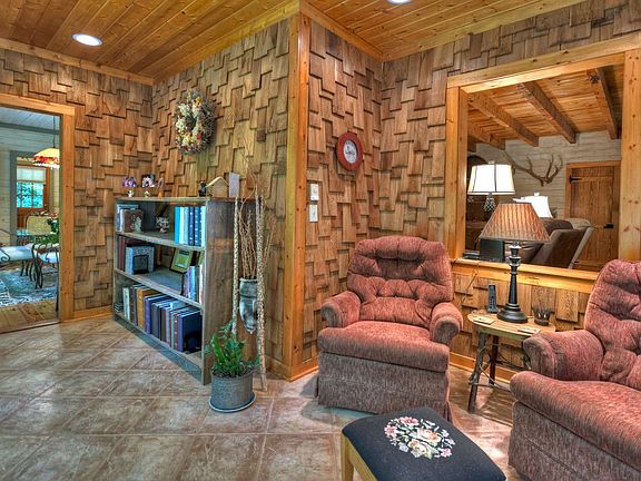 EXTREMELY PRIVATE! Retreat from the world to this immaculately maintained, rustically elegant, TRUE LOG HOME! It features 3 spacious bedrooms with large windows to enjoy the serenity of this peaceful setting! The updated interior boasts a beautiful kitchen with granite and stainless appliances, a breakfast nook and a quiet sunroom/reading area w/heated floor overlooking the serene 2.6 ac. woods with blooming perennials galore. The masonry, woodburning fireplace is the focal point of the living room. Included is a HUGE 2 car, detached garage with workshop and large storage area, a generator and ultimate privacy! Enjoy peaceful walking paths and sitting areas on this gorgeous, private haven. You won't be disappointed with this one! Private Cartecay River access to stocked TROUT STREAM! Handicap accessible.