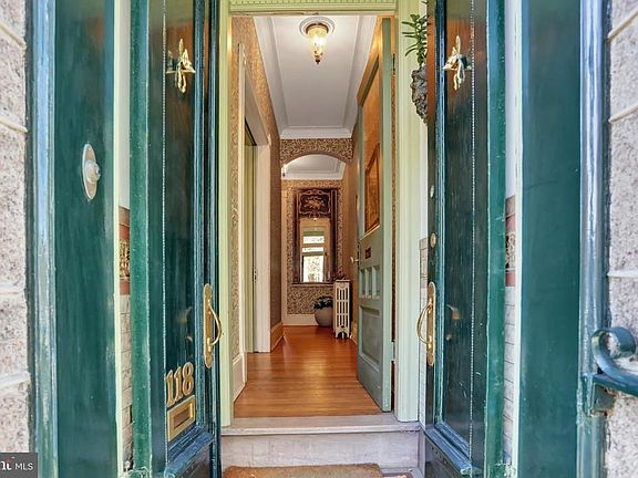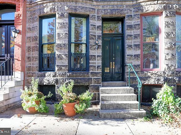 Fantastic opportunity in the heart of Historic Bolton Hill. Distinctive stone bow front townhouse backing up to the enchanting, secluded Rutter's Mill Park! Handsome molding, wood floors, wood burning fireplace in living room, central air and decorative mantels are just a few of the amenities here. Updated kitchen with sliders overlooking deck, garden and the park. Fantastic second floor family room. 4 bedrooms, 2 baths. Treat yourself to this very special "gem"!