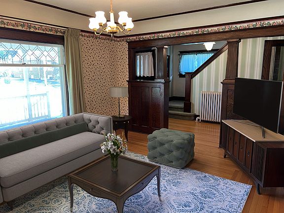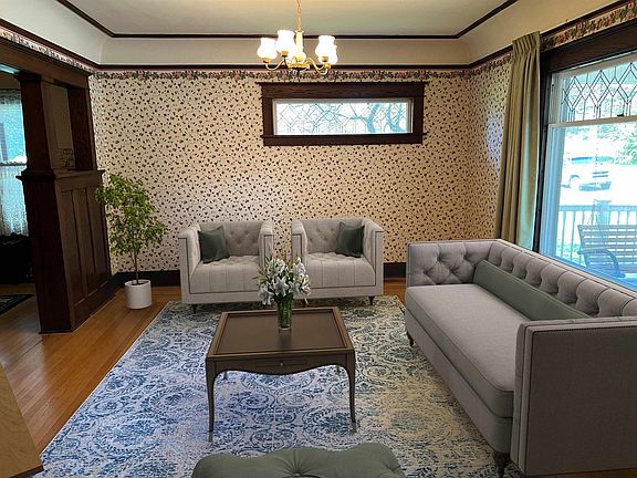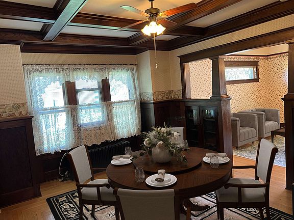 Relax on your covered front porch and enter the charm of this classic 4-square home. Hardwood floors, built-ins, and cozy window seats are just a few of the special features. The main floor boasts a spacious open entry, a living room, dining room, an office or playroom with a delightful window seat, an updated kitchen with a butler's pantry and laundry, a door to the garage and backyard, and access to the family room addition. The family room includes a convenient half bath, a separate shower, and stairs leading to the basement. Upstairs, you'll find 4 bedrooms, a full bath, and a walk-up floored attic with even more potential. The expansive backyard extends nearly 150 feet deep. Don't miss out on this generous 2,382 square feet of finished space with the option for more. The garage, sized at 22' x 20', comes with a walk-up attic providing ample storage or workspace. Some of the furniture may be virtually staged, no alterations or changes to the home!