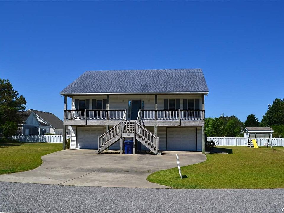 Well Maintained Home in Nags Head Pond on the Outer Banks! This home feels like a new home. Open cathedral ceiling in the living area with pond views from the dining area and kitchen. The master bedroom and two closets with one being a large walk-in. Master bath with tile separate shower. Two additional bedrooms upstairs are separated with a Jack-and-Jill bath and both rooms feature walk-in closets. The back bedroom has a bay window and a door that opens to the back deck. Downstairs features a large open room that could be used for a game room or a den. Another room downstairs with an open and sunny bay window that could be used as an office or a studio. The spacious laundry / mudroom is also downstairs. Two car garage with additional storage between the doors and an enclosed entrance to the home. This home is situated on a corner lot with a wooded side yard and room for a pool on the opposite side of the home.