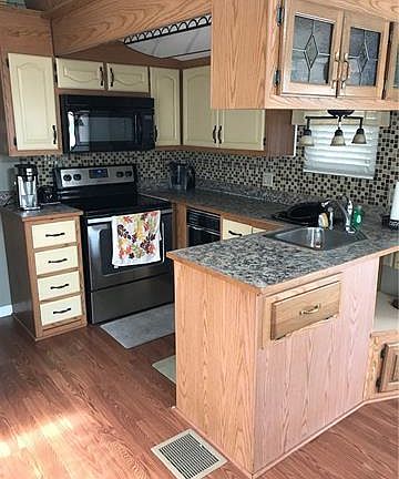 Beautiful Park Model Home with full length screened porch. It has 1 Bedroom with washer and dryer in closet, 1 Bathroom, Kitchen with Dishwasher, that is open to dinning and den area. Then just walk out onto the 9 Ft X 35 Ft covered and screened in porch to enjoy this beautiful shaded lot. All appliances and furniture to stay. Park model windows have been updated. Parking is concrete and gravel with enough space for 3 cars and a golf cart. This property is located in the gated lake community of Badin Shores Resort. This resort offers all paved roads, swimming pool, playground, putt putt, fishing pier, community center, boat landing, marina, fitness area, beach area, and restaurant. Make this your full time home or your weekend lake getaway.