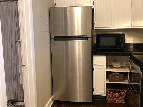 Bright South Norwalk Apartment on Washington St with large sunny deck and includes covered parking! Historic studio apartment in the center of Washington St. faces rear of building with top floor deck. Remodeled kitchen with all NEW stainless steel appliances, NEW washer / dryer, microwave, garbage disposal & granite counter tops. NEW refinished hard wood floors, high ceilings, central A/C, and 3 large closets all in the unit. Enjoy restaurants, Maritime Aquarium, IMAX theater, beaches and parks. Walk to S. Norwalk Train Station, convenient & commuter friendly home. Pets allowed. INCLUDES transfer of covered Haviland parking permit. 2.5% commission for buyer's agent if real estate professional involved.