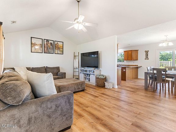Charming 4 bedroom, 2 bathroom home located in the desirable Winchester Estates community of Jacksonville, NC. This beautifully maintained residence boasts a large fenced backyard, perfect for outdoor activities and relaxation. The inviting covered porch is ideal for enjoying your morning coffee or greeting guests. Step inside to discover an open-concept living area with vaulted ceilings that create a spacious and airy atmosphere. The gorgeous hickory LVP flooring throughout the home adds a touch of elegance and durability. The well-appointed eat-in kitchen features all stainless steel appliances, a breakfast bar for additional seating, and a convenient laundry room just off the kitchen. The master bedroom offers a private retreat with an ensuite bathroom and a walk-in closet. Down the hall, you'll find two comfortable guest bedrooms and a full guest bath, providing plenty of space for family and friends. Don't miss the opportunity to make 118 Waverly Way your new address in the heart of Winchester Estates. Schedule a showing today!