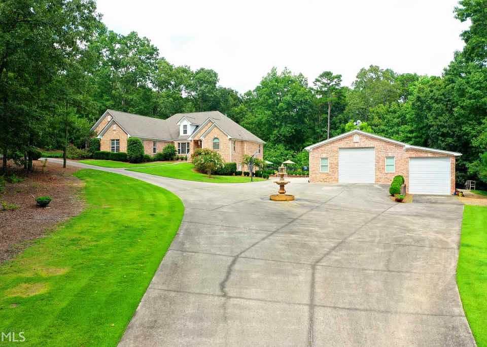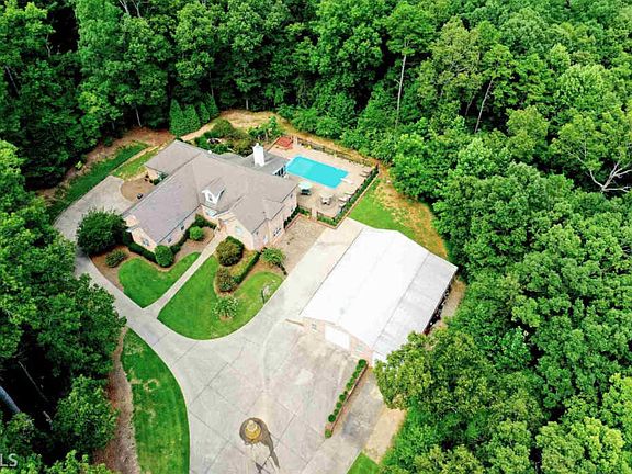 Amazing gated retreat on private 6+ acres in Dawsonville! NEW ROOF! Open concept ranch style home features 2 Master Suites, 2 oversized secondary BR, 5 1/2 baths, huge laundry room, screened porch, finished basement with gym area, rec room, office space and ready-to-finish/storage space. Upstairs loft area features full bath, reading nook/office space w/ additional, ready-to-finish space. The outdoor kitchen area and in-ground pool w/ new liner is surrounded by beautiful pavers & water feature to create the perfect entertaining space. Professional's WORKSHOP - MUST SEE! Huge 3 bays PLUS a separate RV bay. Minutes from the outlets, motorsports park and North GA leisure activities (Historic Dahlonega, hiking, tubing, wineries).