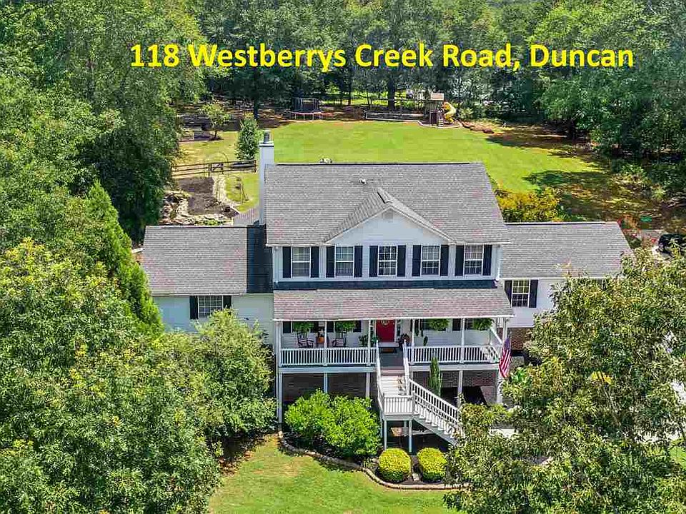 Who needs to leave home when HOME features all THIS! Southern Comfort at its best with this well-loved 2 story plus basement Charleston Style home set on 1.07 tucked away acres in Duncan. Nearby you'll find conveniences like Middle Tyger YMCA, District 5 schools, River Falls Golf course, groceries, I-85, BMW, Greenville, and Spartanburg when you choose to get out. The gracious rocking chair front porch greets family and guests, while the screened porch out back inspires game nights, watching family pool play or just reading a good book and relaxing within earshot of the Koi pond's soothing waterfall. Inside you'll find impeccable updates everywhere: granite countertops, fresh paint, new bamboo laminate floors, new carpet all topped off with a brand new roof (7/29/20) and gutters. The Master bedroom is on the Main floor and is ensuite boasting new marble countertops, double sinks Jacuzzi tub and private entrance to the screened back porch. The floorplan flows comfortably from the formal foyer through the office to the open den and kitchen where a good cook will enjoy the island, double ovens, the wine chiller, the pot rack, extra pantry and formal dining room. UPSTAIRS discover 3 bedrooms, 2 Bathrooms (including a jack and jill), a large bonus room and 2nd floor laundry. The BASEMENT is unfinished but ready for WHATEVER YOU WANT from his workshop to her yoga studio to their rainy day play space or just general storage. You can actually park in your 2 car garage with this kind of storage! And in the future, the plumbing is already in place for another half bathroom. OUTSIDE you'll find a large flat yard, trampoline, playset, irrigated raised and fenced garden beds, an invisible fence for the fur babies, and so much more. When THOSE relatives visit during the holidays you can accommodate them outside in their Motor home with a dedicated pad with its own 30 AMP, waste hookup, and water. WARRANTY & TERMITE BOND PROVIDED. Don't let this one go. Make an appointment today. So much to offer and is a must see!