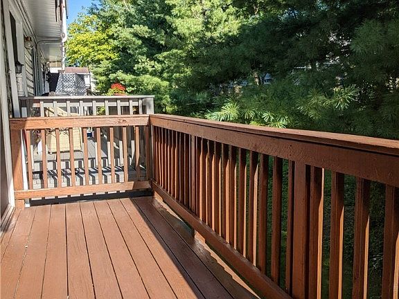 Charming 2 bedroom, 1.5 bath townhome on a quiet, tree-lined street. Gracious lower level entry leads up to the main level with a spacious combination living room/dining room, well equipped kitchen, powder room, cute additional space, and a lovely deck. Upstairs you will find 2 large bedrooms with big closets, and a full bath. The huge lower level laundry/storage room leads to the park-like back yard. Maintenance fee covers roof, sidewalk snow removal, mulch in front yard, grass cutting, and leaf blowing around Thanksgiving. The Buyer Capital Contribution fee is $1,188.00 and the Buyer Resale Certificate fee is $350.00 both due at closing. Convenient to 376, shopping, restaurants, entertainment, and the airport.