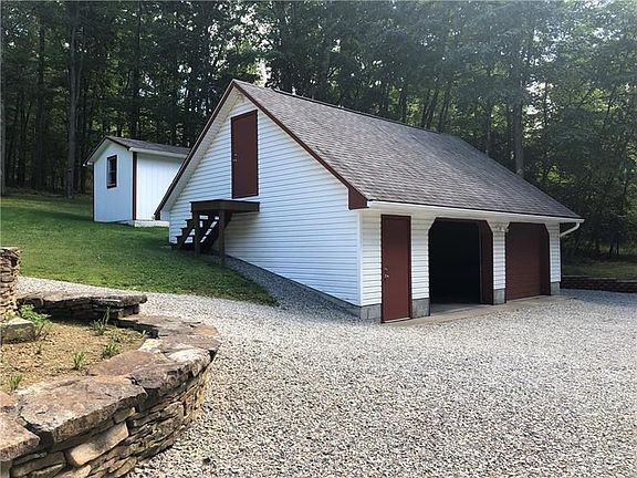 Peace and tranquility is what you will find here. Lots of space here with a 3 Bedroom 2 bath brick home located on approx 16 acres. Keep your vehicles out of the weather with the 24'x30' garage plus an additional 12'x30' storage room above. Oil /wood furnace. Finished basement. 2 beautiful large decks to enjoy nature all around. Concrete patio below front deck. Shed behind garage stays. Wood burning fireplace in the living room.