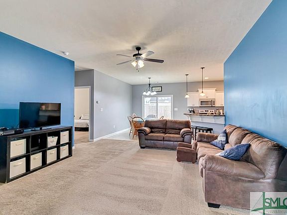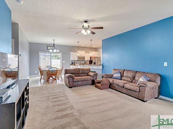 Adorable home with 2 car garage in highly sought-after South Effingham! 3 bedrooms, 2 bath, and a bonus room off separated from the living room by French doors, perfect for an office or playroom. Kitchen has beautiful white cabinets, stainless steel appliances, recessed lighting, and pendant lighting over the breakfast bar. Wonderful open concept between the living, kitchen, and dining areas with high ceilings. Pantry and laundry room off from kitchen. Spacious master suite with walk in closet and master bath includes large tub, separate shower and double vanities. Sliding back door off from the kitchen leading to a fully privacy fenced yard with a firepit and patio, great for hosting your next barbeque! Come check out this home today!