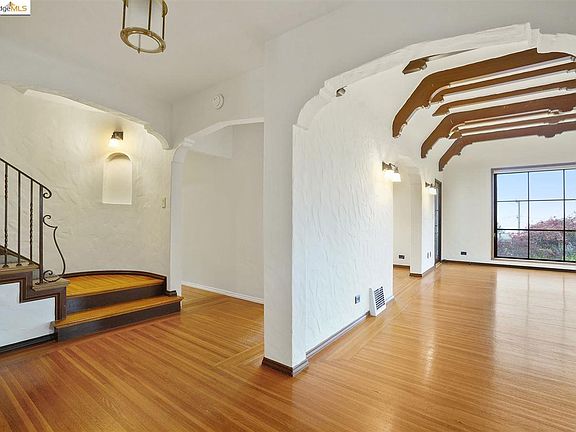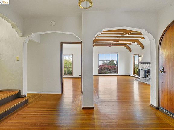 Welcome home to this 4BR/3BA MacGregor-built home on a quiet cul-de-sac in Kensington. Nearly level-in, enter into the large living room with exposed beams, matchstick hardwood flooring, fireplace with gas insert & amazing San Francisco Bay + Golden Gate views from the large picture window. Formal dining room connects to the eat-in kitchen, with granite counter tops, custom cabinetry & plenty of space for cooking/entertaining. First floor also features 1BR/1BA, while the second level has 2BR/1BA. Top floor primary bedroom has a spacious walk-in closet + adjacent room for additional home office/nursery. Luxurious ensuite bathroom has dual sinks, jetted tub, walk-in shower & panoramic Bay views. Additional features include: attached two-car garage, laundry & copious storage spaces. Enjoy the outdoors from the first floor balcony, or wandering the many pathways through the lush gardens. Convenient to Upper Kensington shops, Colusa Circle, Solano Ave, AC Transit stop & Hilltop Elementary