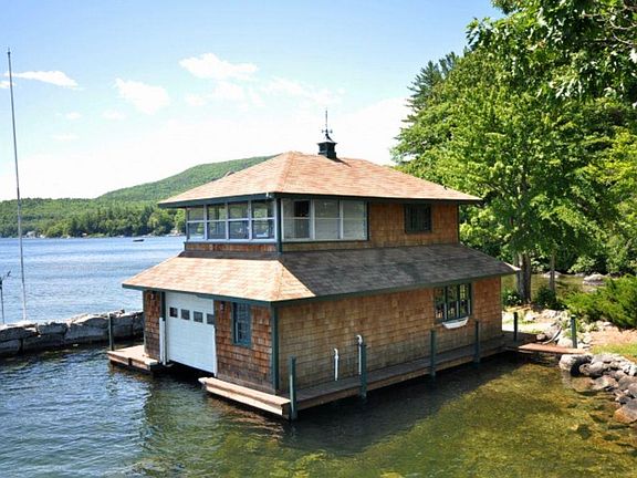 ONLY ONE SUMMER WEEK STILL AVAILABLE 7/8-7/15 LAKE WINNIPESAUKEE WEEKLY RENTAL YEAR-ROUND.....ALL RENTALS ARE SAT. TO SAT. 'The Point Home' boasts 270 degree panoramic mountain and lake vistas, 711 ft of shorefront with an expansive lawn to the water's edge, a private sandy beach and coveted boathouse complete with sleeping quarters, half bath and screened porch overlooking the lake. The waterfront features deep water dockage at the boathouse, as well as a two slip dock in front of a charming, waterfront change room with outdoor shower. A 5,000+ sq ft, six bedroom, five and 1/2 bath Adirondack-style lakefront home completes the property, making it the perfect setting for friends and family to share memorable times both on the shores of Lake Winnipesaukee and slopes of nearby Gunstock Ski Area! WEEKLY RATES: SUMMER $15,000 OFF SEASON $8,500 to $12,000.