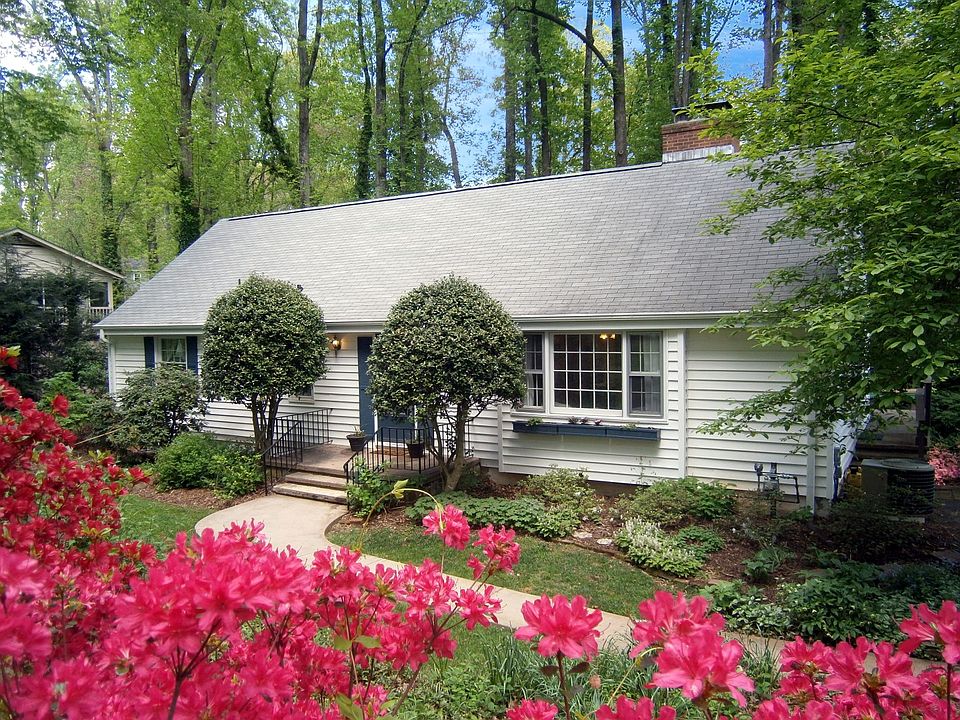 <br>Outstanding location near UVA offering easy access to anywhere in Charlottesville. Remodeled and updated tastefully. Kitchen features granite, stainless appliances, & bamboo floors. Living room has picture frame window, gleaming hardwood floors, fireplace, & built in bookcases. Mostly finished basement has an in-law suite with private entrance. Beautifully landscaped exterior, private backyard, and deck looking out to wooded area with stream; quiet neighborhood. Walk-up attic offers loads of storage.