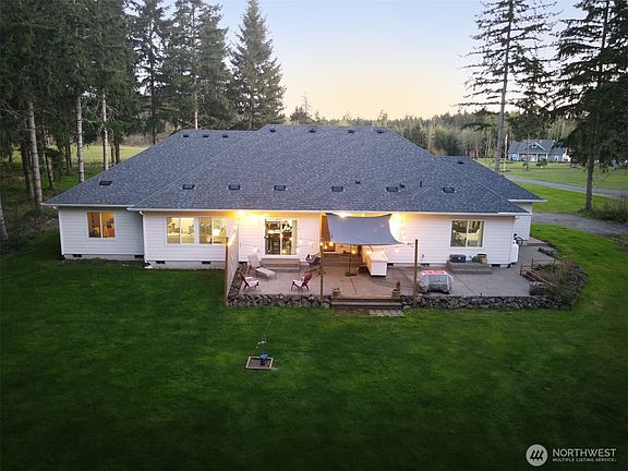 Cozy up in your own peaceful sanctuary! An evening BBQ or morning coffee with your new friend, serenity. Make this beautiful Napavine 4 bedroom, one-level home your own! Inside, the Primary Bedroom & fine amenities are at the opposite end of the house from the other 3 bedrooms. The inviting & open floor plan includes a spacious office near the front door. The quiet road serves just 7 nice homes. 5 acres is plenty of room to create your orchard, shop or other dream, or simply keep your green thumb in shape harvesting the bountiful raised beds. Starlink stays to keep you connected at home. High end options are negotiable (the Tonal Trainer & Zero Turn Mower). Home is where you will want to be - centrally located to Portland & Seattle!