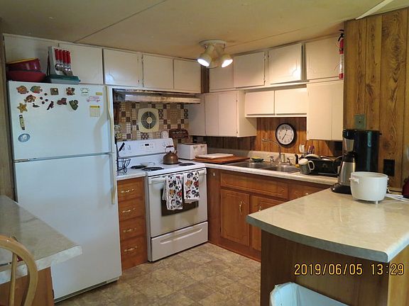 Great weekend retreat/fisherman camp, 2BR, 1 bath mobile home; eat-in kitchen w/appliances, living room plus family room; chain linked fenced area; outbuilding, carport, awning; just minutes away from Blue Creek boat ramp. Seasonal Water View