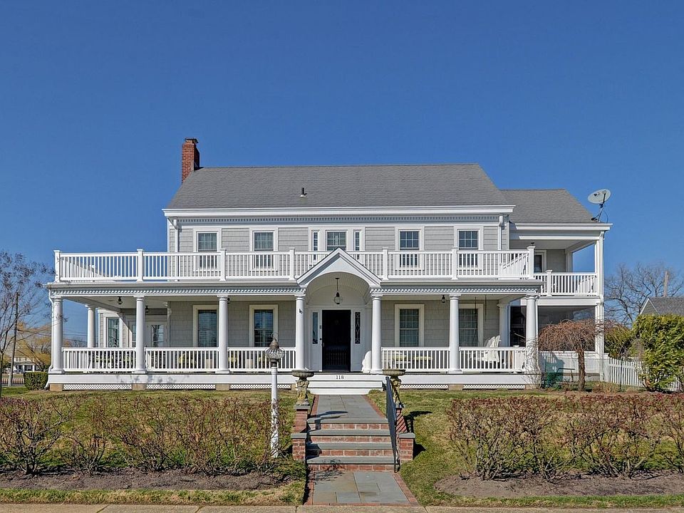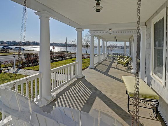 Sunrises,sunsets, panoramic waterviews and one of the prettiest wrap around porches in Spring Lake. Master bedroom suite with dressing room and fireplace with access to deck on pond. New California closets Second and third bedrooms with access to another porch to enjoy sunrises. Third floor has water view bedroom. Screened porch off kitchen w/water views. Large kitchen with fireplace.