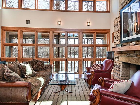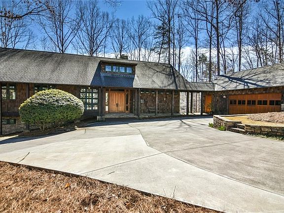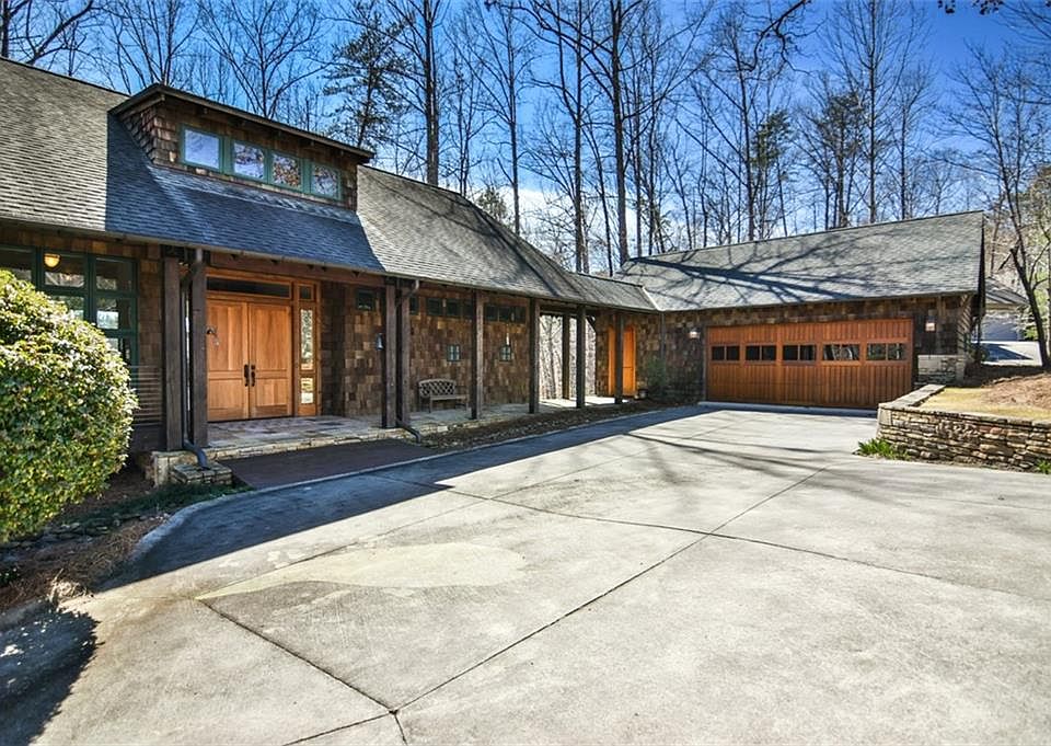 Gorgeous Waterfront retreat located on North Lake Keowee in The Cliffs at Keowee. Whether searching for the perfect vacation oasis or settling in to everyday lake living, you'll find peaceful solitude in this 4 Bedroom, 3 ½ Bath home complete with concrete C-shape drive that wraps into a spacious detached 2-car garage w/workbench. Cedar Shake/Stone finish of this home lends a getaway retreat feel allowing you the chance to enjoy vacation vibes 24/7 - 365 days a year. There are copper gutters on the front of the home with downspouts that connect to underground pipes. You will notice the gorgeous stone front porch extends to garage entrance with ease of access from garage to home. Ease of access continues with back deck which wraps around front of home connecting to front porch, and features stairs providing lower level access. The Epe wood bridge leading to front porch is hand scribed to match face of stone where it meets front porch. The bridge was constructed to angle on two sloped aspects yet be level. All decking and handrails are Epe exotic wood, all stone is natural, all shake is Cedar from Canada pretreated for insect resistance and is maintenance free, all beams (Interior and exterior) are Douglas Fir from Canada as are wood ceilings. Interior wood flooring is wide-board Cypress stained in Cherry. Step up into the main living room, featuring a beautiful stone fireplace, and unique multi-pane, floor to ceiling window feature that spans entire wall space on main level and basement. There are curved walls throughout the home. The back-window wall is curved; window trim was custom cut and installed. Lake views won't escape you as you head through the French doors to the right of fireplace into the main level master bedroom suite. Master suite hosts spacious bedroom with glass door exit to lake view balcony. Large organizational walk-in closet, and large master bath with double vanity sink, jetted tub, and spacious walk-in shower also occupy the Master Suite. All clothes closets throughout home are professionally installed California Closet systems. Across living room, on left side of home, you will find open space dining room, and spacious kitchen, complete with double ovens, dishwasher, disposal, and warmer. Laundry room area can be found off kitchen with half bath and exit to back deck. A great place for entertaining, grilling, or just chilling. Main living room features hand railing with wood, steel, and black iron accents. Detail which continued to exterior deck of home. All wire railings are American-made stainless steel and will not rust. Follow the stairs to the left of main entrance which leads to the basement main living space or recreation room with stone fireplace, wet bar, lake view, and Entrance/Exit to a Stone Patio ledge. On left and right of the fireplace you will find 2 bedrooms, one features a full bath with tile flooring, double closets, and Entrance/Exit to Stone patio lake view. To the left of basement stairway, a short hallway leads to tile floor section where you will find a 3rd bedroom with built-in bookcases, a closet, and lake views. This area also includes, a storage room, a single vanity full bath with walk-in shower, a second laundry room with sink, and sliding glass door Entrance/Exit to stone patio. Exterior architecture of this home is just as appealing as inside, and features exposed wood beam construction around deck, patio, and stairs. A stone path leads you to the lake. Path features landscape lighting, and cove views all around giving you a point lot experience. Path leads to lake's edge featuring a stone fire-pit with seating. Fire-pit path leads into the lake by stone steps allowing you the opportunity to take an easy dip into the quiet cove water. On opposite side of fire-pit, path leads to spacious covered dock with boat lift. Dock is extended into the lake to give you deep water. If you're looking for a quiet escape or lake living at its best, you want to see this house.