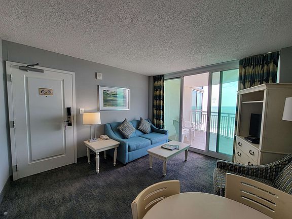 Breath taking ocean views from the balcony and living room of this amazing ocean view 1 bedroom one bath villa at the Avista Resort. This front corner unit not only gives you views of the Atlantic Ocean and beach but also panoramic views of the southern coastline. This true one-bedroom villa features a large private balcony and your entry into the unit is from the living room which has a full size Murphy Bed. Your fully equipped kitchen has a full-size stove, refrigerator, dishwasher, microwave and granite counter tops. From the kitchen you can access the bedroom and bathroom. The bedroom features a king size bed and plenty or closet space for a vacationing family. The bathroom has a jetted tub to help you relax after a long day at the pool. The full-size washer and dryer are located off of the kitchen. The unit has had many upgrades and is prime condition. The HOA fee covers all your utilities and all insurance. From your villa you can take the climate controlled enclosed corridor to the Indoor or outdoor pools. The resort amenities include not only your pools but a Lazy River, Hot Tubs, a Fitness Center, Snack Bar, on-site full Restaurant and Lounge. Located just a short walk to Main Street you will be able to enjoy all the attractions that North Myrtle Beach has to offer. This unit is priced to sell so book you showing today!