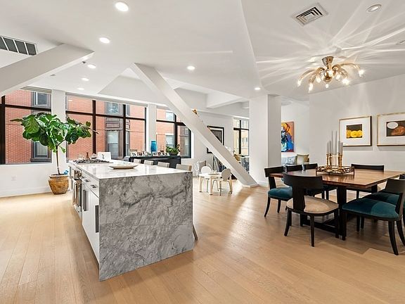 Exquisite proportions, rich in texture & beautiful light. This stunning corner residence offers approx. 2,116ft of open concept loft living space with walls of windows, approx.12-ft ceilings throughout, impressive oversized kitchen with a 15-ft island designed for entertaining, stone countertops, ample storage, top-of-the-line appliances, opening up to a large living, dining and seating areas; 3 bedrooms, 2 full bathrooms including a sizable primary suit, featuring an ensuite primary bathroom with heated floors, walk-in closet and two additional closet spaces; in-unit laundry and one deeded garage parking space. This professionally managed building offers a common art gallery and elevator access to the roof deck with panoramic city views. Enjoy access to Boston's vibrant South End SoWA Art & Design District, grocery, shopping, cafés, boutique, restaurants & more.