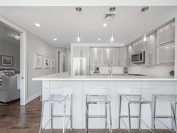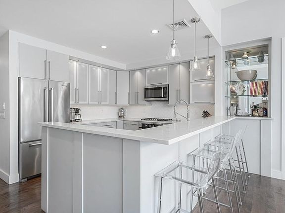 Checks all the boxes! South End 2 bed/2 bath home w/over 1,400SF all on 1 floor w/elevator, direct access garage parking & sprawling common roof deck w/stunning Back Bay, Financial District and sunset views. Smartly designed floor plan offers chef's kitchen w/quartz counters, stainless appliances, wine fridge, deep sink & counter seating for 4 is open to large living area ideal for huge sectional as well as dining area perfect for large table during dinner parties. Sun splashes thru a long wall with tall west/southwest facing windows. Kind-sized master suite offers 2 long walls of custom built floor to ceiling step-in closets & marble bath w/generous step-in shower & linen cabinet. 2nd queen sized bedroom has oversized closet. Full second bath w/tub/shower, large walk-in coat closet, welcoming foyer upon unit entry, central AC, washer/dryer, recessed lights, custom built-ins, & high ceilings through out complete this fabulous home. Peters Park w/playground & dogpark across the street.