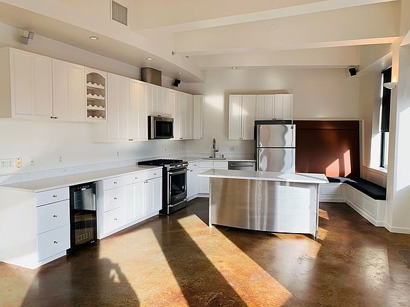 Freshly painted throughout with crisp white kitchen cabinets, all new white quartz counters, stainless steel appliances and bathroom vanities! Don't miss out on this stunning custom designed loft unit in SoWa district's sought after Laconia Lofts. A sun-drenched southeast facing unit with 8 large windows has an oversized kitchen with built-in banquette plus dining area and a king-size master with a large walk-in master closet. Additional features include high ceilings, C/A, in-unit W/D, custom built-ins, recessed lighting, excellent storage/closets, rainfall shower with separate Jacuzzi tub and double sink vanity, double-sided gas fireplace AND one garage parking space. Professionally managed elevator building with common roof deck and grill. Enjoy being steps to the Ink Block with Whole Foods, Tatte, CVS, Bar Mezzana, CorePower Yoga and more! The South End's best restaurants, shops & galleries at your fingertips! Heat, hot water & gas included in rent. Available now and easy to show!