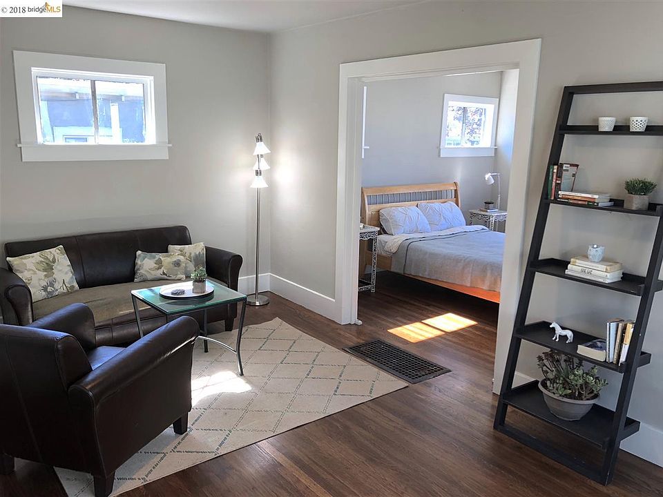 Sweet and charming 2 bedroom, 1 bath bungalow on a large 4,000 sq. ft. lot (aprx. per public records), with large detached garage near BART and freeway. Fresh paint inside and out (August 2018), refinished hardwood floors (August 2018), large rooms, great natural light, and at a great price for first time home buyers and investors.