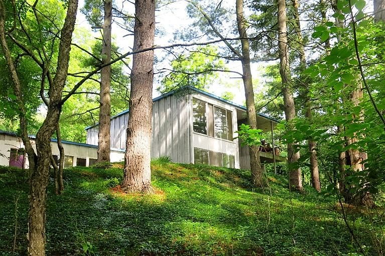 Classic mid-century modern designed by architect David Osler & built for artist Milton Kemnitz on a wooded 1.73 ac site across from Bird Hills Nature Area. Composed to bring the outside in w/walls of windows to enjoy the stunning, private views! 2-sty foyer. Upper level has newer maple flrs thru-out, a spacious sun filled LR w/recessed lighting, cedar paneled wall & huge windows. Updated gourmet kitchen w/skylight, beautiful cherry stained cabs, granite c-tops, SS apps & lots of space to cook & entertain. Lrg dining space w/windows galore has recessed lighting, a wall of blt-in cabs for serving & add'l storage & sliding dr to covered deck (easily screened-in). Mstr suite w/2 closets & laundry chute. Mstr bath has a skylight, tiled tub/shower w/glass dr & ceramic flr. W/O LL has a lrg FR, storage/rec rm w/blt-in sink (designed as M. Kemnitz's art studio),2 bdrms w/Berber carpet & 2nd tiled bath. Updates: new roof, gutters, interior/exterior paint & more. Exceptional one-of-a-kind home!