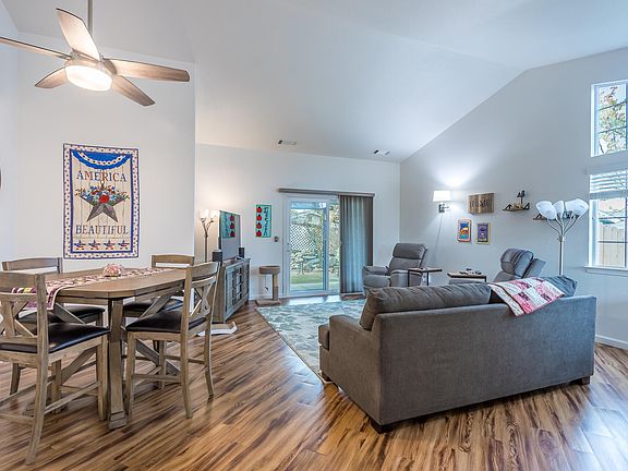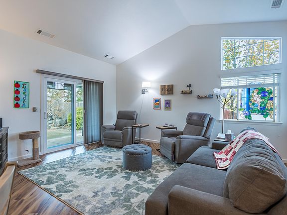 This home is tucked into the upper area of the well established 55 and over neighborhood, Shasta Hill estates. The home is nicely kept, with newer roof (2019) and new A/C and offers two sizable bedrooms and 2 bathrooms. The great room includes a large living room and dining room area, which flows into the large kitchen with ample counter space, new appliances and a breakfast bar. The covered patio is the perfect place to relax and enjoy the birds and other wildlife that frequent the mature trees, as well as a view of Mt Shasta in the distance!