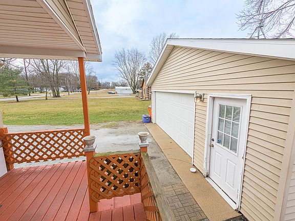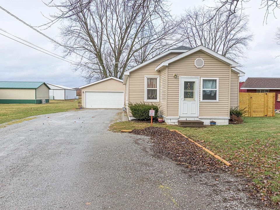 This cute and cozy 2 bedroom, 1 bath ranch has tons of updates including recently replaced windows, plumbing, and renovated bathroom. In addition the well tank and pump and water heater have been replaced within last 5 years also. Outside you're welcomed with a huge yard with deck, firepit, new fence installed in 2022, newer 2 car detached garage just insulated last year and plumbing already ran for a bathroom to be installed, large utility shed, and plenty of parking. Great location just off the edge of town! Inspections are welcome but house is being sold As Is.
