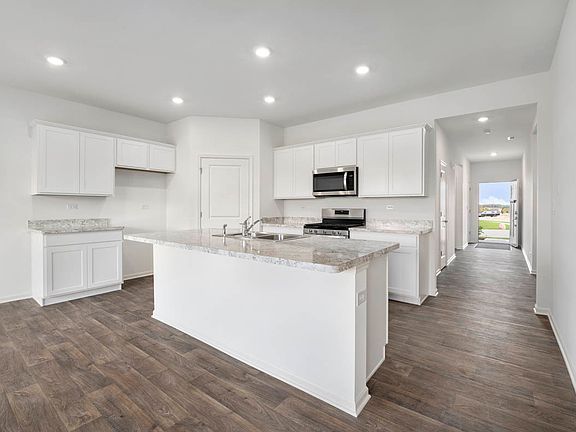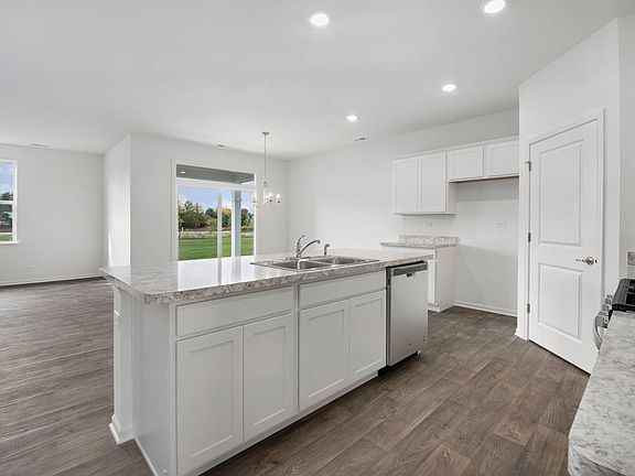 New Construction Ranch Home at Carillon, for Move-In Ready! Carillon at Cambridge Lakes in Pingree Grove's Active Adult Community presents the Chatham. This ranch home is filled with four bedrooms, two full bathrooms and a two-car garage. The Chatham has room for guests, an office, and hobbies along with a spacious primary suite. A luxury bathroom awaits in suite that includes a seated shower crowned with a transom window, plus dual vanity, private water closet, linen closet, and roomy wardrobe closet. The modern kitchen is host to designer cabinets, stainless steel appliances, and an eat-in quartz island that overlooks the living and dining spaces. Homeowners will enjoy the view of the natural landscape from the cover private patio. This home has hard surface flooring throughout the living area and even includes cordless faux wood blinds on all windows except patio door and transom. Nothing to do but move-in! The HOA takes care of lawn maintenance and snow removal and access to the 30,000 sq. ft. clubhouse. Carillon homes now feature tankless water heating systems and a Smart Home Technology System that allows you to control and monitor home at home or away. Includes a 1-year builder warranty, 2-year mechanical warranty and 10-year structural warranty. All D.R. Horton Chicago homes include our America's Smart Home Technology which allows you to monitor and control your home from the comfort of your sofa or from 500 miles away and connects to your home with your smartphone, tablet or computer. Home life can be hands-free. It's never been easier to settle into new routine. Set the scene with your voice, from your phone, through the Qolsys panel which you can schedule it and forget it. Your home will always await you with your personalized settings. Our priority is to make sure you have the right smart home system to grow with you. Our homes speak to Bluetooth, Wi-Fi, Z-Wave and cellular devices so you can sync with almost any smart device. Builder Warranty 1-2-10. Exterior/interior photos of similar home, actual home as built may vary.