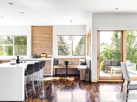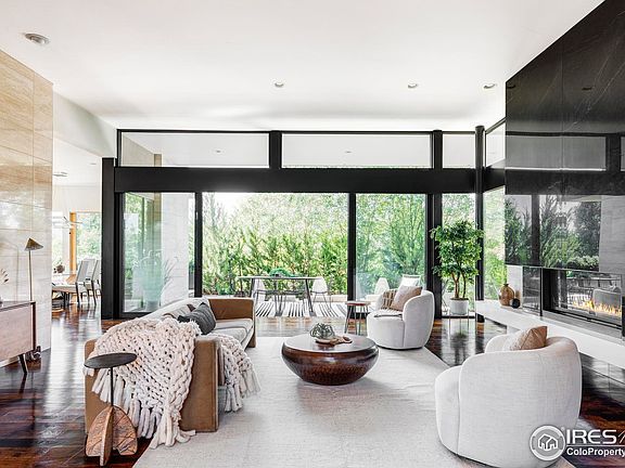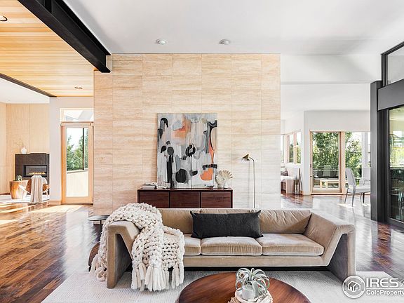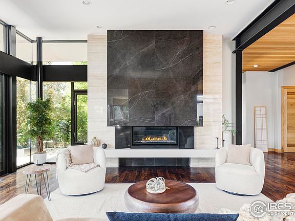 Embrace California-inspired indoor-outdoor living in this modern showplace featuring spectacular design, upscale finishes, panoramic mountain views and an ideal Westminster location, nestled between Denver and Boulder.Designed in 2013 by the award-winning Entasis Group, this home delivers an architecturally impressive backdrop featured in Colorado Expression magazine. Inside, ceilings soar above rich five-inch plank walnut flooring and walls of glass framing verdant views and glorious natural light in every direction. Greet guests alongside a fireplace, east-facing patio, and bespoke stone and paneled walls trimmed in the formal living room. Stretch out and relax in front of the dramatic linear fireplace and stone surround. Work-of-art open kitchen featuring sleek designer cabinetry, thick Caesarstone countertops and a fleet of Thermador appliances. Three onyx fountains, a 17-foot fire pit and a hot tub make this an ideal setting for lavish entertaining or tranquil weekends.The home's luxurious accommodations begin with a main-floor bedroom suite with outdoor access ideal for guests. The stunning open staircase ushers you to the second floor, where the secluded owner's suite impresses with a king-size bedroom featuring a fireplace and access to the wraparound deck. The lavish primary bath pairs a soaking tub, glass shower, double vanity and private water closet with gleaming floor-to-ceiling tile. The home's rooftop access delivers mesmerizing views of the surrounding mountains and city lights. Explore a massive lower level family room with a walk-up wet bar and fireplace. Energy-efficient passive solar design, an updated security system, a four-car attached garage add effortless convenience and comfort. From this coveted location within the Huntington Trails subdivision, you'll enjoy easy access to McKay Lake, top-rated Adams County schools, and excellent shopping at Orchard Town Center. Denver, Boulder and DIA are all just 30 mins away.