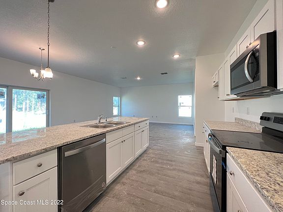 (READY TO MOVE IN) The elegant floor serves as a spacious living area for families and guests. (NO HOA) Featuring an open concept floor plan, the home boasts 4 spacious bedrooms, 2 full bathrooms and is complete with many upgrades. These include energy-efficient stainless steel appliances, spacious solid stones countertops in the kitchen, stunning modern cabinets and an attached two-car garage. In addition, this floor plan secluded master retreat highlights a walk-in closet. Best of all, Palm Bay offers residents a premier location with convenient access to nearby golf courses, world-class area beaches and amenity-packed parks.